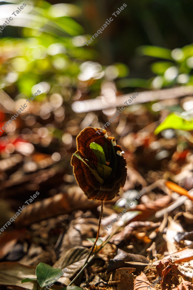 Macro of Wild Bracket Fungus on Rainforest Floor in Andaman Islands