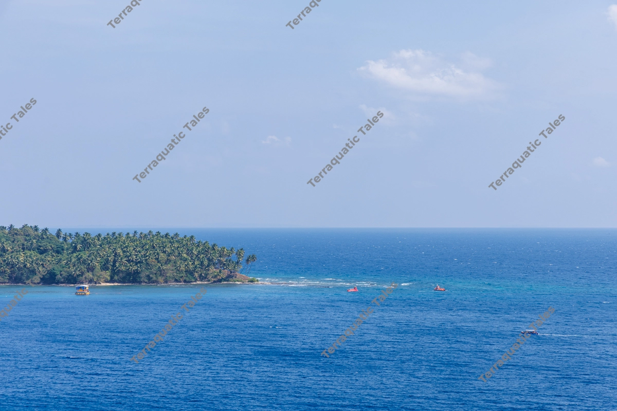 Distant Tropical Island and Reef in the Deep Blue Andaman Sea